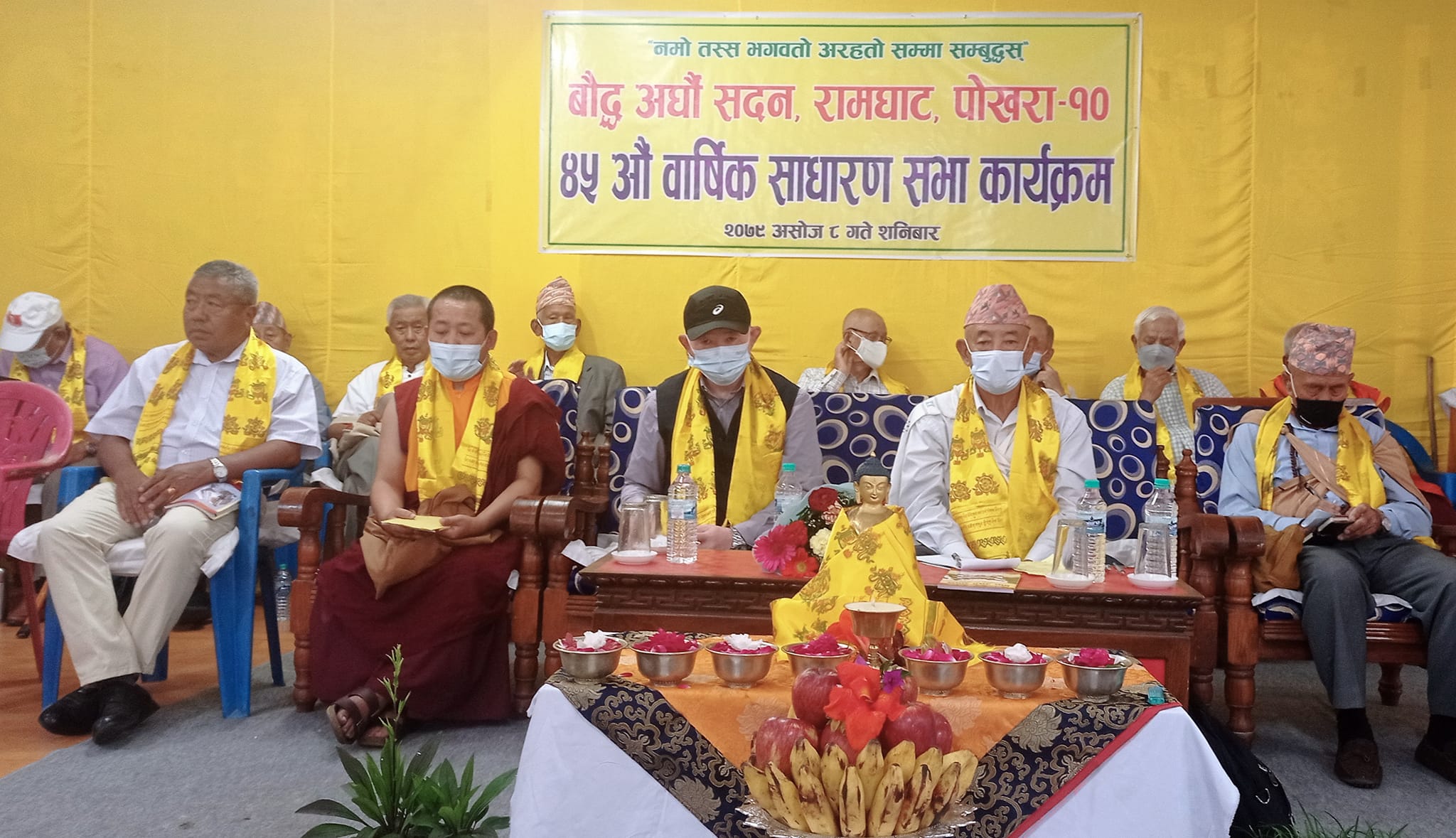 पोखरा १० रामघाट स्थित बौद्ध अर्घौं सदनको ४५ औं वार्षिक साधारणभा शनिवार सम्पन्न भएको छ । साधारणसभाको प्रमुख अतिथि पोखरा महानगरपालिका वडा नं.१० का वडाध्यक्ष राजेश गुरुङले उद्घाटन गर्दै धर्मनिरपेक्ष मुलुकमा अझै पनि हिन्दुत्वको व्यवहार रहेकाले बुद्धिष्ट संस्था र समुदायगत समाजहरुले सहयोग पाएका छैनन्, हामी वडा नं.१० सबैलाई सहयोग गर्न तयार छौं भनेका छौं ।