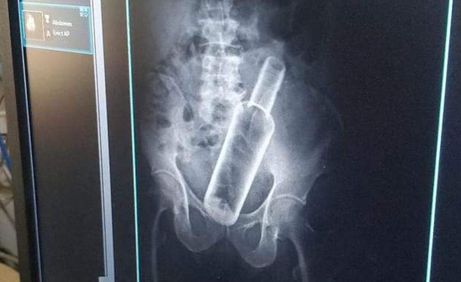 धनगढीको फूलबारी बस्ने ६१ वर्षीय जमनसिंह रोक्कामगरको एक्सरे गर्दा पेटमा रक्सीको बोतल देखिएको अस्पतालले जनाएको छ ।प्रादेशिक अस्पतालका सूचना अधिकारी मेखराज उपाध्यक्षले दिएको जानकारी अनुसार बिहीबार पेट दुखेपछि अस्पताल आएका रोकामगरको एक्सरे गर्ने क्रममा बोतल देखिएको हो ।