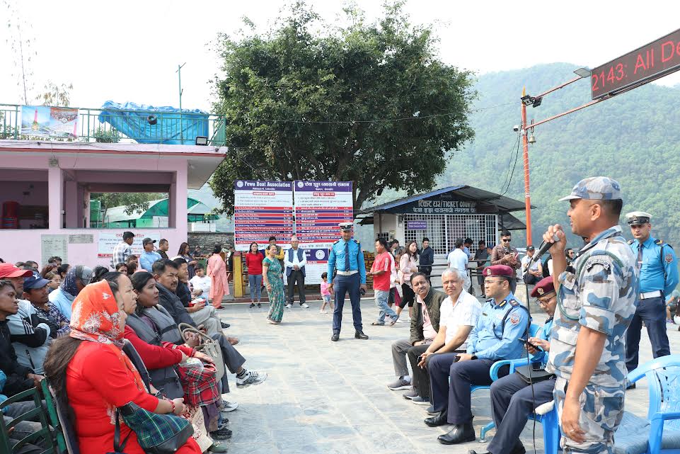 हालको समयमा मौसमको खराबी तथा हावाहुरीको कारणबाट हुन सक्ने दुर्घटना, लाईफ ज्याकेटको सही प्रयोग, अकस्मात हुनसक्ने डुङ्गा दुर्घटनामा अपनाउनु पर्ने सावधानीका उपाय, मादक पदार्थ सेवन गरी डुङ्गा नचलाउने विषयमा अन्तरक्रियात्मक प्रशिक्षण कार्यक्रम गरिएको जिल्ला प्रहरी कार्यालय कास्कीले जनाएको छ ।