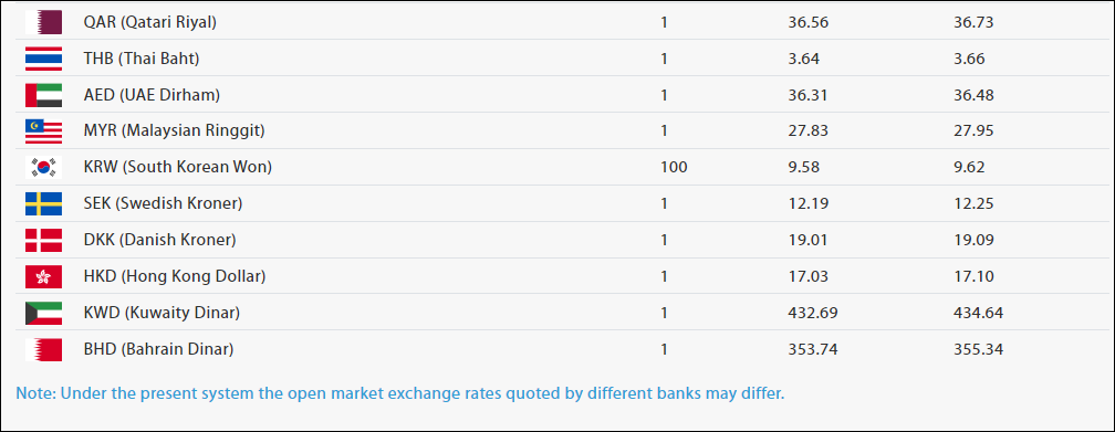 साउदी रियालको खरिददर ३५ रुपैयाँ ५५ पैसा र बिक्रीदर ३५ रुपैयाँ ७१ पैसा छ ।कतारी रियालको मूल्य एकको खरिद दर ३६ रुपैयाँ ५६ पैसा र बिक्री दर ३६ रुपैयाँ ७३ पैसा रहेको राष्ट्र बैंकले जनाएको छ।