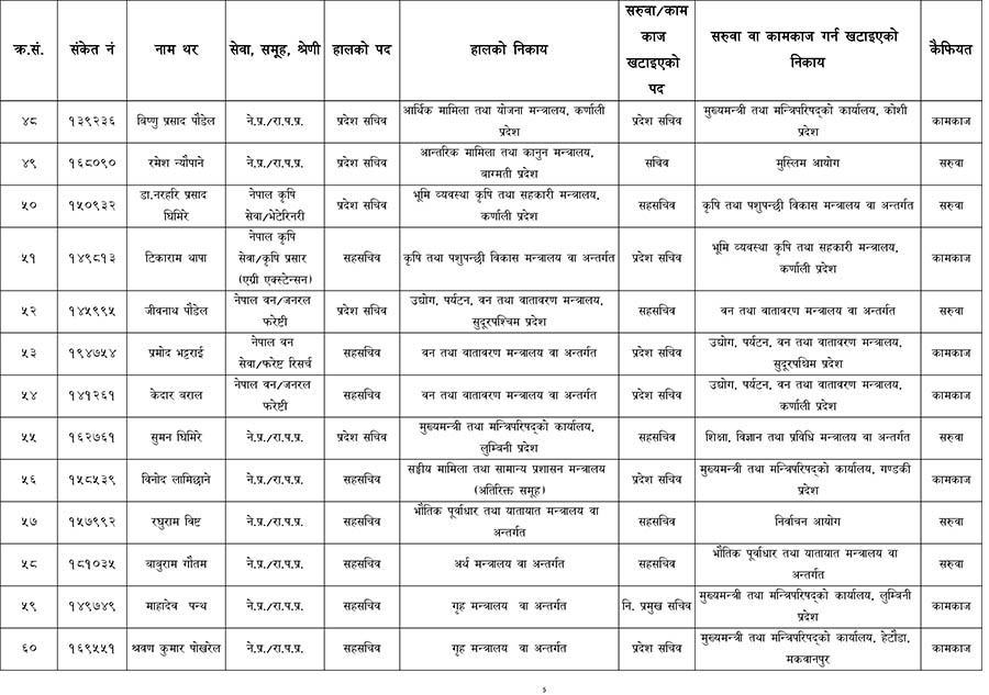 एकैपटक ६० जना सहसचिवको सरुवा (सूचीसहित)
