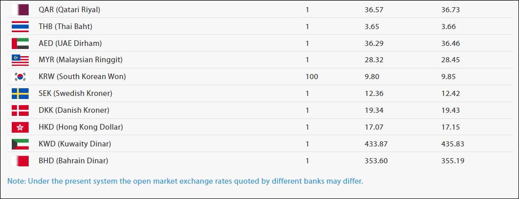 साउदी रियालको खरिददर ३५ रुपैयाँ ५५ पैसा र बिक्रीदर ३५ रुपैयाँ ७१ पैसा छ ।कतारी रियालको मूल्य एकको खरिद दर ३६ रुपैयाँ ५७ पैसा र बिक्री दर ३६ रुपैयाँ ७३ पैसा रहेको राष्ट्र बैंकले जनाएको छ।