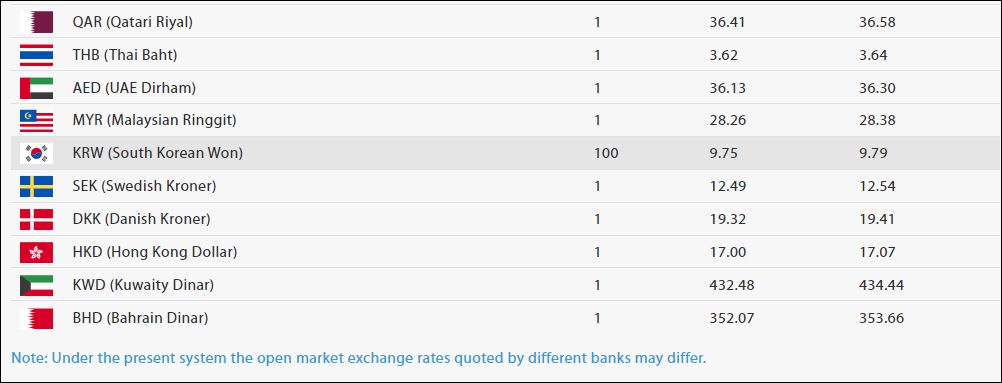 साउदी रियालको खरिददर ३५ रुपैयाँ ३९ पैसा र बिक्रीदर ३५ रुपैयाँ ५५ पैसा छ ।कतारी रियालको मूल्य एकको खरिद दर ३६ रुपैयाँ ४१ पैसा र बिक्री दर ३६ रुपैयाँ ५८ पैसा रहेको राष्ट्र बैंकले जनाएको छ।
