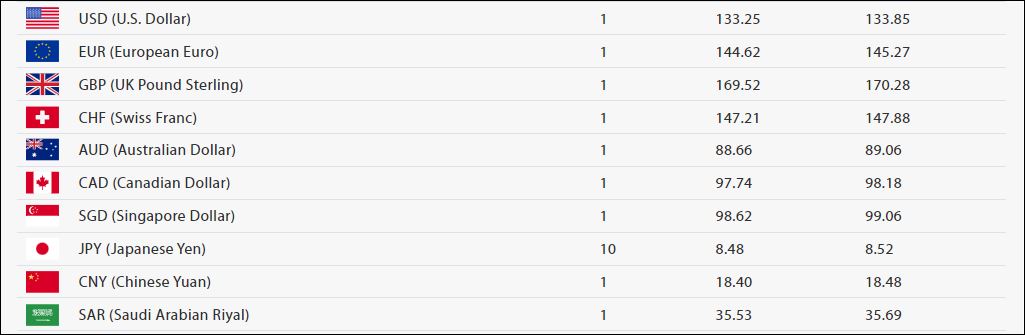 नेपाल राष्ट्र बैंकले निर्धारण गरेको विदेशी मुद्रा विनिमयदर अनुसार साताको पहिलो दिन आज आइतबार डलर एकको खरिददर १३३ रुपैयाँ २५ पैसा र बिक्रीदर १३३ रुपैयाँ ८५ पैसा रहेको छ ।