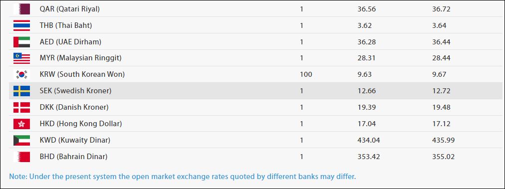 साउदी रियालको खरिददर ३५ रुपैयाँ ५३ पैसा र बिक्रीदर ३६ रुपैयाँ ४४ पैसा छ ।कतारी रियालको मूल्य एकको खरिद दर ३६ रुपैयाँ २८ पैसा र बिक्री दर ३६ रुपैयाँ ४४ पैसा रहेको राष्ट्र बैंकले जनाएको छ।