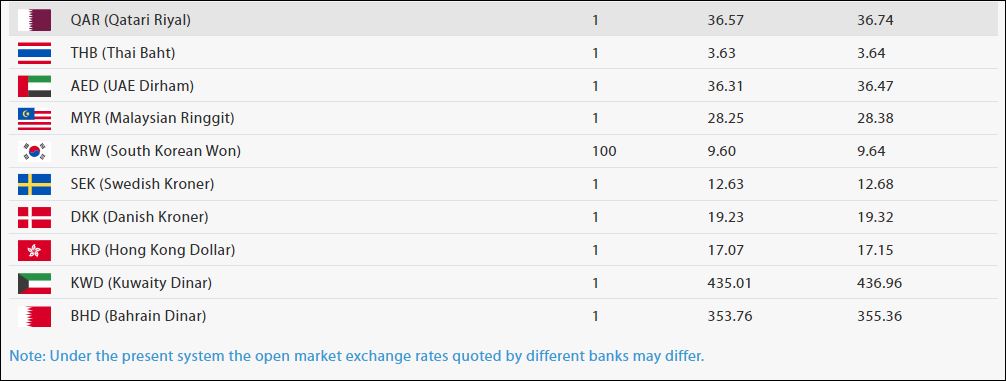 साउदी रियालको खरिददर ३५ रुपैयाँ ५५ पैसा र बिक्रीदर ३५ रुपैयाँ ७१ पैसा छ ।कतारी रियालको मूल्य एकको खरिद दर ३६ रुपैयाँ ५७ पैसा र बिक्री दर ३६ रुपैयाँ ७४ पैसा रहेको राष्ट्र बैंकले जनाएको छ।