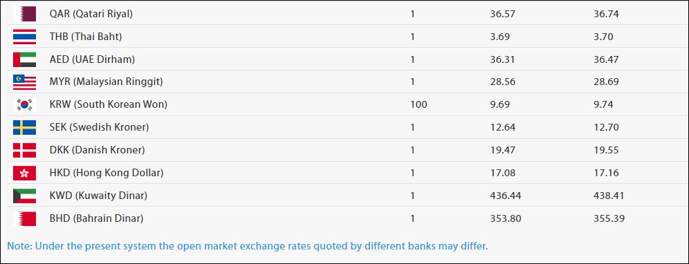 साउदी रियालको खरिददर ३५ रुपैयाँ ५६ पैसा र बिक्रीदर ३५ रुपैयाँ ७२ पैसा छ ।कतारी रियालको मूल्य एकको खरिद दर ३६ रुपैयाँ ५७ पैसा र बिक्री दर ३६ रुपैयाँ ७४ पैसा रहेको राष्ट्र बैंकले जनाएको छ।