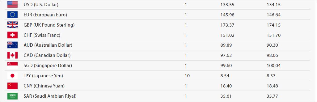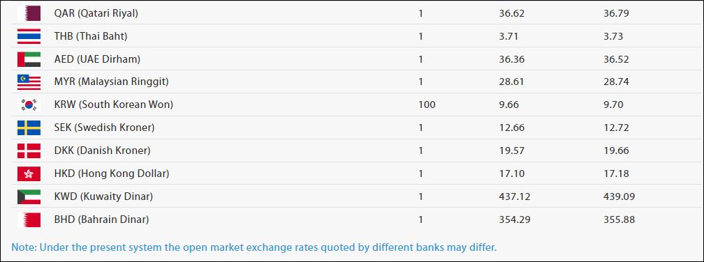 साउदी रियालको खरिददर ३५ रुपैयाँ ६१ पैसा र बिक्रीदर ३५ रुपैयाँ ७७ पैसा छ ।कतारी रियालको मूल्य एकको खरिद दर ३६ रुपैयाँ ६२ पैसा र बिक्री दर ३६ रुपैयाँ ७९ पैसा रहेको राष्ट्र बैंकले जनाएको छ।