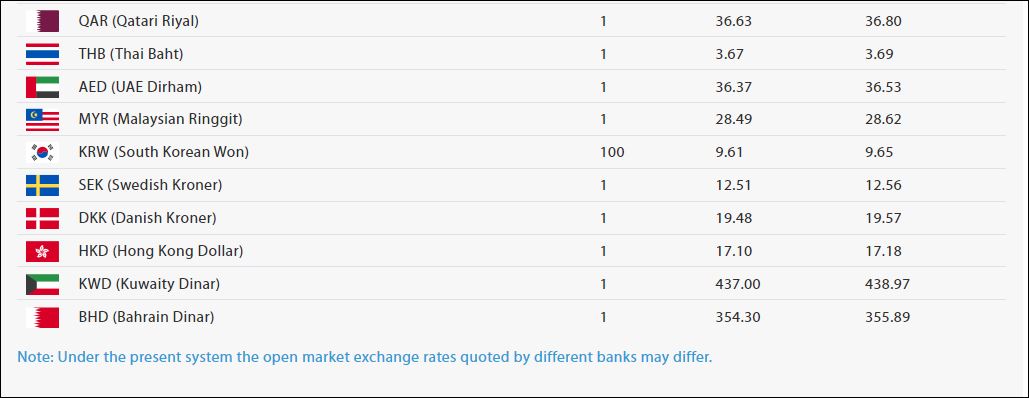 साउदी रियालको खरिददर ३५ रुपैयाँ ६१ पैसा र बिक्रीदर ३५ रुपैयाँ ७७ पैसा छ ।कतारी रियालको मूल्य एकको खरिद दर ३६ रुपैयाँ ६३ पैसा र बिक्री दर ३६ रुपैयाँ ८० पैसा रहेको राष्ट्र बैंकले जनाएको छ।