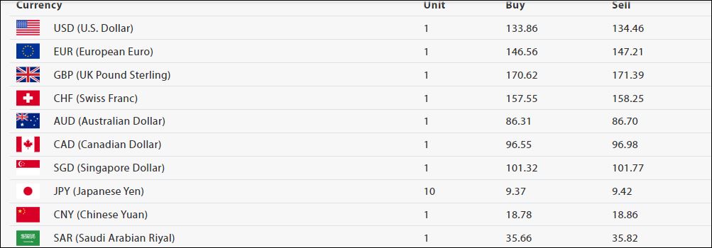 आज पाउण्ड एकको खरिददर १७० रुपैयाँ ६२ पैसा र बिक्रीदर १७१ रुपैयाँ ३९ पैसा छ । आज १० जापानी येनको खरिददर ९ रुपैयाँ ३७ पैसा र बिक्रीदर ९ रुपैयाँ ४२ पैसा छ । भने आज चिनियाँ युवानको खरिददर १८ रुपैयाँ ७८ पैसा र बिक्रीदर १८ रुपैयाँ ८६ पैसा छ ।