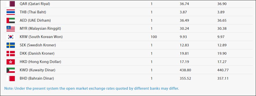 साउदी रियालको खरिददर ३५ रुपैयाँ ७१ पैसा र बिक्रीदर ३५ रुपैयाँ ८७ पैसा छ ।कतारी रियालको मूल्य एकको खरिद दर ३६ रुपैयाँ ७४ पैसा र बिक्री दर ३६ रुपैयाँ ९० पैसा रहेको राष्ट्र बैंकले जनाएको छ।