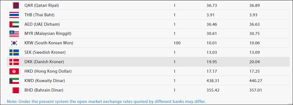 साउदी रियालको खरिददर ३५ रुपैयाँ ६९ पैसा र बिक्रीदर ३५ रुपैयाँ ८५ पैसा छ ।कतारी रियालको मूल्य एकको खरिद दर ३६ रुपैयाँ ७३ पैसा र बिक्री दर ३६ रुपैयाँ ८९ पैसा रहेको राष्ट्र बैंकले जनाएको छ।