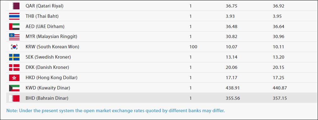 साउदी रियालको खरिददर ३५ रुपैयाँ ७१ पैसा र बिक्रीदर ३५ रुपैयाँ ८७ पैसा छ ।कतारी रियालको मूल्य एकको खरिद दर ३६ रुपैयाँ ७५ पैसा र बिक्री दर ३६ रुपैयाँ ९२ पैसा रहेको राष्ट्र बैंकले जनाएको छ।