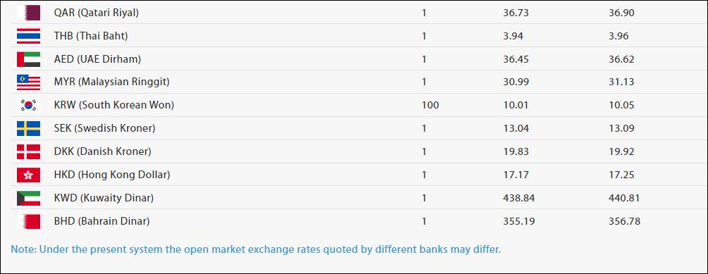 साउदी रियालको खरिददर ३५ रुपैयाँ ६८ पैसा र बिक्रीदर ३५ रुपैयाँ ८४ पैसा छ ।कतारी रियालको मूल्य एकको खरिद दर ३६ रुपैयाँ ७३ पैसा र बिक्री दर ३६ रुपैयाँ ९० पैसा रहेको राष्ट्र बैंकले जनाएको छ।
