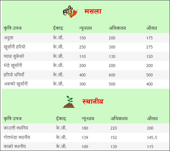 आज सानो गोलभेडाँको भाउ के.जी १४१ रुपैयाँ र ठुलो गोलभेडाँको भाउ १३५ रुपैयाँ पुगेको छ । हिजो सानो गोलभेडाँ के.जीको १२८ रुपैयाँ र ठुलो गोलभेडाँको १३० रुपैयाँ थियो । पोखरामा आज रातो र सेतो दुवै आलुको भाउ प्रति के.जी ६० रुपैयाँ रहेका छ ।