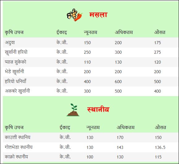 मासु तथा फलफुलको मुल्य हेर्न यहाँ क्लिक गर्नुहोस् ।