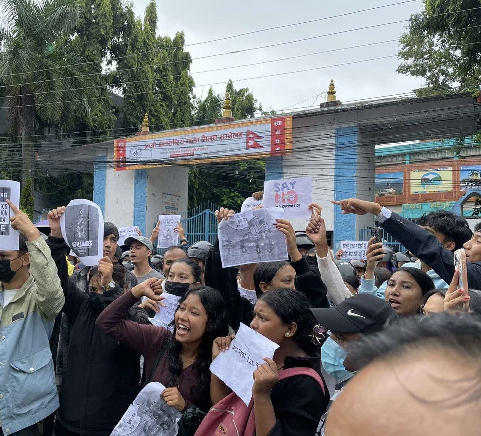 देशमा बढिरहेको भ्रष्टाचार र सामाजिक सञ्जाल बन्दविरूद्ध आक्रोशित जेनजीले आज पोखरा सभागृह अगाडि प्रदर्शन गरेका हुन्।