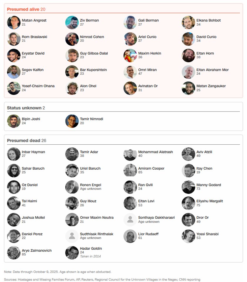 सीएनएनको तथ्याङ्क अनुसार इजरायली सरकारले बाँकी ४८ जना बन्धकहरूमध्ये २६ जनाको मृत्यु भइसकेको जनाएको छ । यद्यपि तामिर निम्रोदी र बिपिन जोशीको अवस्था अझै अनिश्चित छ। सरकारले पहिले नै उनीहरूको भाग्यलाई लिएर ‘गम्भीर चिन्ता’ व्यक्त गरेको थियो।