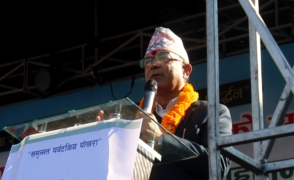 कार्यक्रमको सभापतिको आसनबाट बोल्दै पोखरा ४ का वडाध्यक्ष देवकृष्ण पराजुलीले आफ्नो वडाले कला र संस्कृतिको संरक्षणका लागि महत्वपूर्ण कार्य गरेको बताए । उनले विकास भनेको भौतिक पूर्वाधार मात्र निर्माण गर्नु नभएर कला र संस्कृतिको संरक्षण पनि रहेको बताए । उनले कला र संस्कृतिको संरक्षण र उक्त स्थानमा रहेको पुरानो बस्तीलाई विकास गर्न विशेष योजनाका साथ अगाडि बढेको जानकारी दिए ।