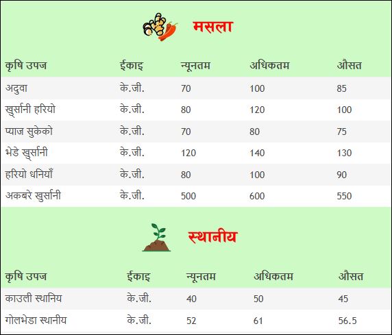 अन्य तरकारी, फलफुल तथा मासुको मुल्य हेर्न यहाँ क्लिक गर्नुहोस् ।