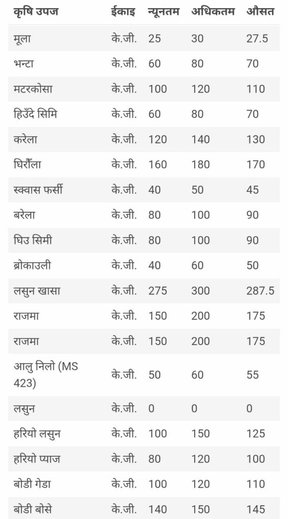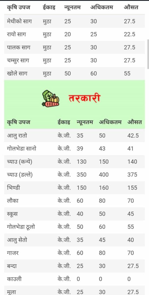 स्कुस ४० देखि ५० रुपैयाँसम्म, गोलभेडा ठूलो प्रति किलो ५० देखि ६० रुपैयाँसम्म, आलु सेतो ३५ देखि ४५ रुपैयाँसम्म, आलु निलो प्रतिकिलो ५० देखि ६० रुपयाँ सम्म विक्री भएको कृषि उपज थोक बजार शान्तिवनले जनाएको छ ।