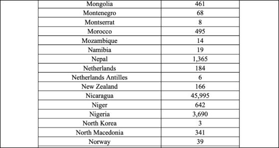 डोनाल्ड ट्रम्प राष्ट्रपति बनेपछि अमेरिकी सरकारले अवैध आप्रवासीलाई घर फर्काउने प्रक्रिया जारी राखेको छ । यसैक्रममा अमेरिकाबाट निष्कासनमा पर्ने विभिन्न देशका १४ लाख ४५ हजार ५४९ जना आप्रवासीहरुको संख्या सार्वजनिक भएको छ ।