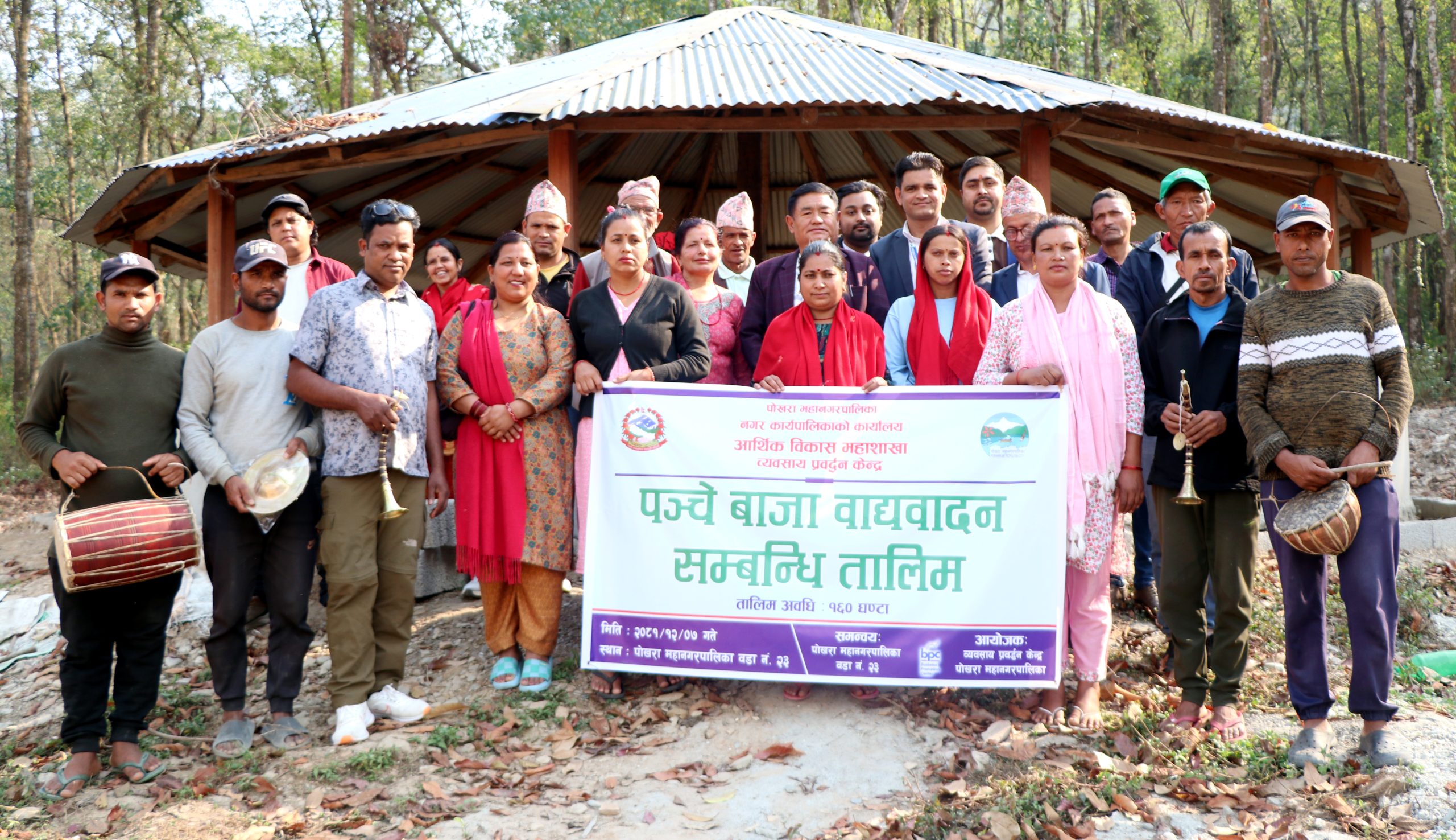 पोखरा महानगरको ग्रामीण भेग वडा नं २३ बाम्दी क्षेत्रमा रहेको पुरुष तथा महिला दिदिबहिनीहरुलाई समेटेर सञ्चालन गरिएको उक्त तालिमको उद्घाटन गर्दै पोखरा महानगरपालिका वडा नं २३ का अध्यक्ष रामकाजी गुरुङले पञ्चेबाजा वाद्यवादन सम्बन्धि तालिमले पञ्चेबाजाको क्षेत्रमा नया पुस्ता उत्पादनमा जोड दिदै ब्यवसायिकतालाई समेत जोड्ने बताए ।