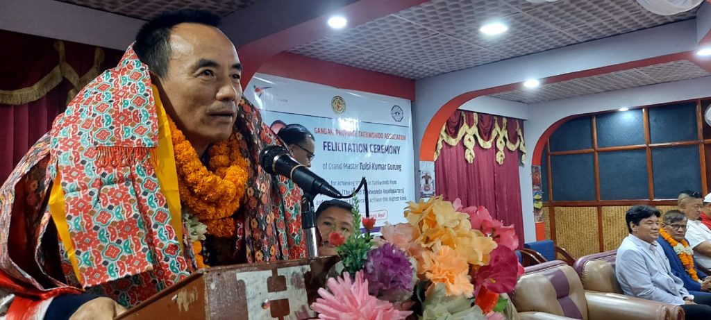 तेक्वान्दोमा सबैभन्दा माथिल्लो उपाधि ९ डान प्राप्त गरेका ग्राण्डमास्टर तुलसीकुमार गुरुङलाई सम्मान गरिएको छ । गण्डकी प्रदेश तेक्वान्दो संघले शुक्रबार पोखरामा एक समारोह आयोजना गरी उनलाई खादा, दोसल्ला र ताम्रापत्रसहित सम्मान गरेको हो । प्रमुख अतिथि नेपाल तेक्वान्दो संघका केन्द्रीय उपाध्यक्ष हरेश्वर पोखरेल, संघ गण्डकी अध्यक्ष जगन गुरुङ, महासचिव रमेश पौडेलसमेतले उनलाई बधाई दिँदै सम्मान गरेका हुन् ।