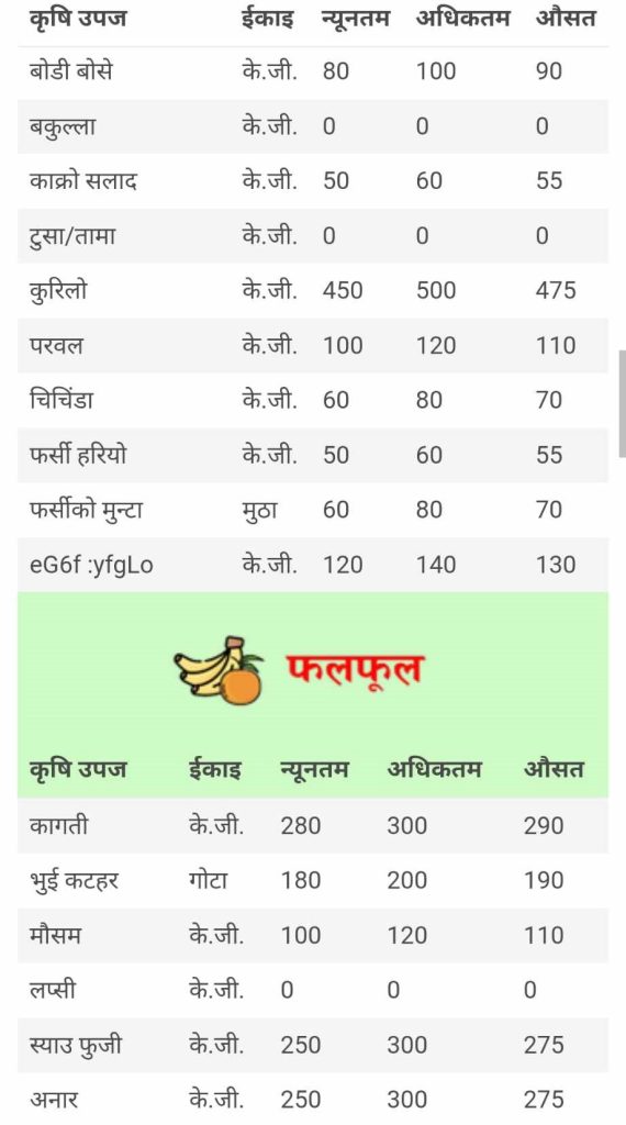 कुन तरकारी तथा फलफूलको मूल्य कति ? हेर्नुहोस ।