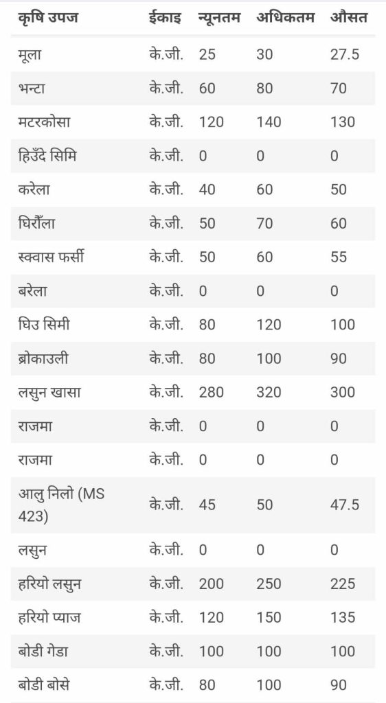 आजको तरकारीको मूल्यसूची