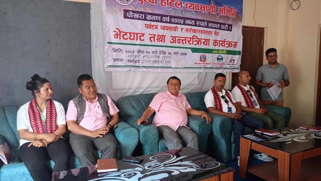 पृथ्वी होटल व्यवसायी समितिका निवर्तमान अध्यक्ष बालकृष्ण न्युरेले पोखराको प्राकृतिक सौन्दर्य, आतिथि सत्कार र पोखरा भ्रमण वर्ष २०२५ को अबसरमा दिइएका छुट प्याकेजको बारेमा जानकारी दिए । उनले स्वर्गद्वारीका पर्यटन व्यवसायी र जनप्रतिनिधिलाई पोखरा भ्रमणका लागि निम्ता दिए ।