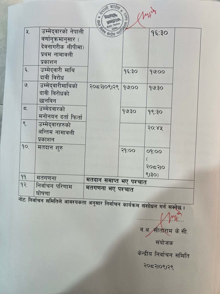 नेपाली कांग्रेसको विशेष महाधिवेशन अन्तर्गत नयाँ नेतृत्व चयनका लागि आजै राति ९ बजेदेखि मतदान हुने भएको छ ।