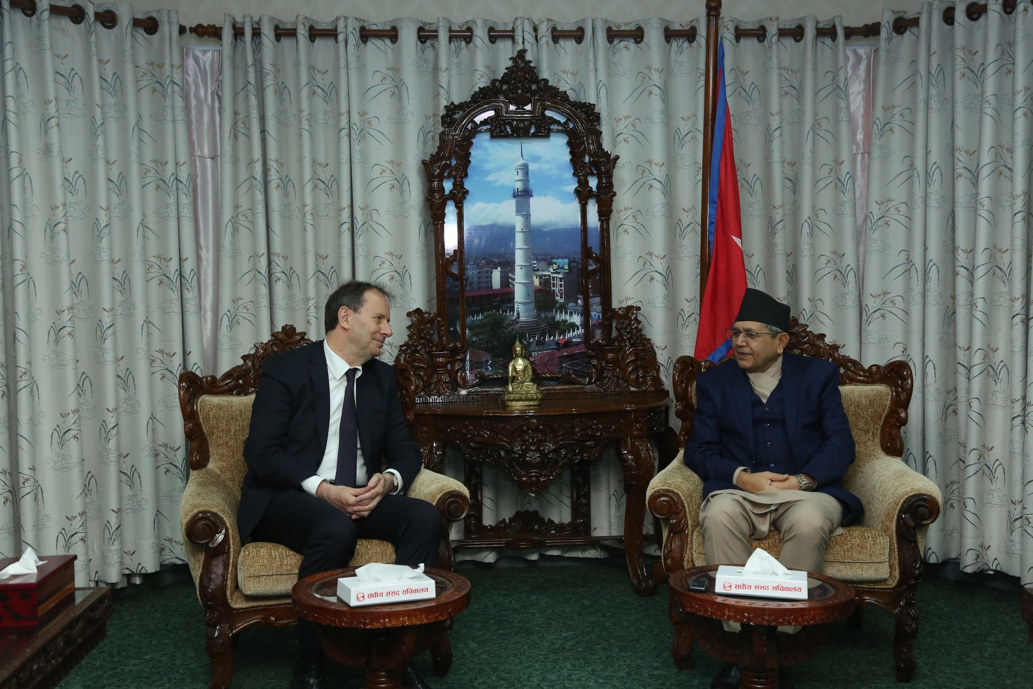 काठमाडौं । सभामुख देवराज घिमिरेसँग नेपालका लागि फ्रान्सका राजदूत गिल्स बोरबाओले भेट गरेका छन् । सिंहदरबारमा मंगलबार भएको भेटमा नेपाल र फ्रान्सबीचको मैत्रीपूर्ण सम्बन्ध, विकास सहयोग, जनस्तरको सम्बन्ध, लगानी तथा व्यापार लगायतका विषयमा छलफल भएको सभामुख...