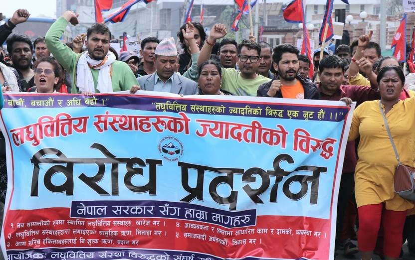 काठमाडौँ । लघुवित्त र मिटर ब्याजीहरुविरुद्ध काठमाडौँमा विरोध प्रदर्शन भएको छ । मंगलबार पीडितहरू काठमाडौँको माइतीघरमा भेला भएर प्रदर्शन गरेका हुन् । प्रदर्शनका लागि पीडितहरू काठमाडौँ उपत्यकाबाहिरबाट समेत आएका थिए । प्रदर्शनमा ५० जिल्लाका पीडित सहभागी भएको...