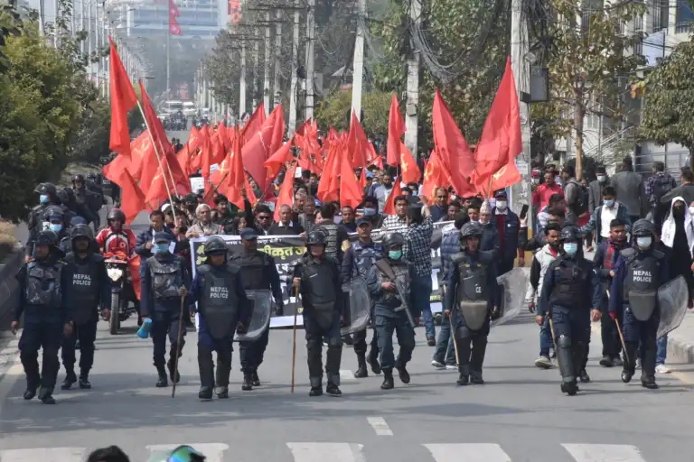 काठमाडौं। नेत्रविक्रम चन्द ‘विप्लव’ नेतृत्वको नेपाल कम्युनिष्ट पार्टीले माइतीघर मण्डलामा विरोध र्याली निकालेको छ। बैंक तथा वित्तिय संस्था र मीटरब्याजीविरुद्ध नेपाल कम्युनिष्ट पार्टीले माइतीघर मण्डलामा विरोध र्याली निकालेको हो।
