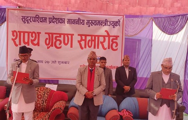 धनगढी । सुदूरपश्चिमका नवनियुक्त मुख्यमन्त्री कमलबहादुर शाहले पद तथा गोपनीयताको शपथ लिएका छन् । प्रदेश प्रमुखको कार्यालयमा दिउँसो आयोजना गरिएको विशेष समारोहकाबीच शाहले प्रदेश प्रमुख देवराज जोशीबाट पद तथा गोपनियताको शपथ लिएका हुन् । शाहलाई बिहीबार प्रदेश...