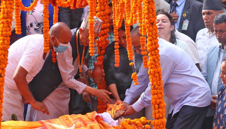 प्रधानमन्त्री पुष्पकमल दाहाल ‘प्रचण्ड’ले पत्नी सीतालाई दागबत्ती दिएका छन्। प्रधानमन्त्री प्रचण्डले बुधबार पशुपति आर्यघाटमा पत्नी सीतालाई दागबत्ती दिएका हुन्। दाहसंस्कारअघि सीताको शव पशुपतिको ब्रह्मनालमा राखिएको थियो। ब्रह्मनालमा प्रधानमन्त्री प्रचण्डसहित...