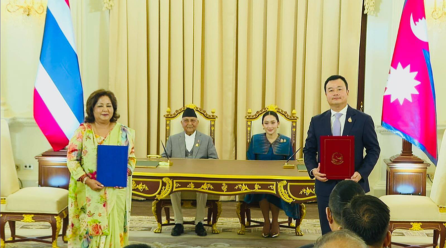 काठमाडौं । प्रधानमन्त्री केपी शर्मा ओलीको औपचारिक थाइल्यान्ड भ्रमणमा दुई देशबीच विभिन्न सम्झौतापत्रमा हस्ताक्षर भएको छ । परराष्ट्रमन्त्री आरजु राणा देउवाका अनुसार दुई देशबीच पर्यटन सहयोग आदान–प्रदान गर्ने सम्बन्धी समझदारी पत्रमा हस्ताक्षर भएको हो । नेपाल...