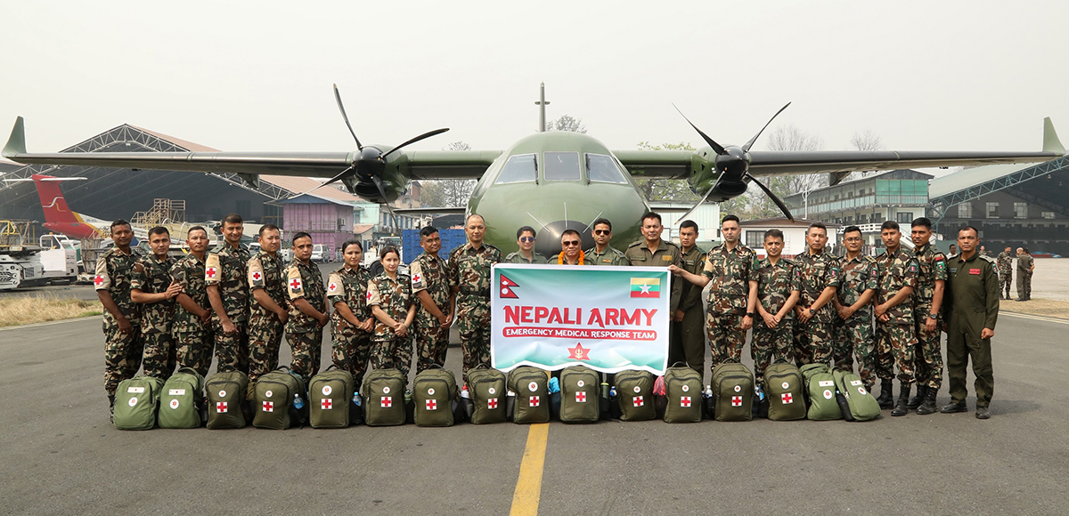 काठमाडौं । भूकम्पको पीडामा परेको म्यानमारमा मेडिकल राहत लिएर नेपाली सेनाको टोली सैन्य जहाजमा त्यसतर्फ प्रस्थान गरेको छ । नेपाल सरकारले त्यहाँ सहायता पठाउने निर्णय गरेको थियो । प्रमुख सेनानी रामचन्द्र श्रेष्ठको कमाण्डमा १२ जना चिकित्सकीय टोली, ४ जना...