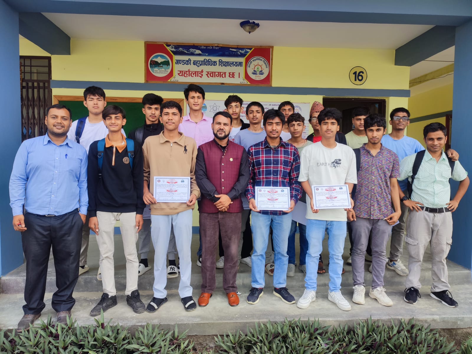 पोखरा । एसइइ परिक्षा दिएर बसेका बिद्यार्थीलाइ लक्षीत गर्दै गण्डकी बहुप्राविधिक शिक्षालय पोखराले निशुल्क छोटो अवधिको १५ दिने मोवाइल तथा इलेकट्रीकल्स सामाग्री मर्मत तालिम कम्प्युटर तालिम सम्पन्न भएको छ । गत जेठ १३ देखी प्रशिक्षार्थी अभिमुखिकरण कार्यक्रम...