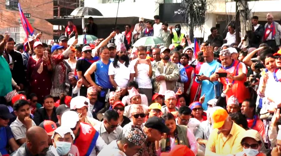 काठमाडौं । राजसंस्था र हिन्दू राज्यसहितका माग राखेर प्रदर्शनमा उत्रिएका राजावादीहरूले धर्ना सुरु गरेका छन । राप्रपा, नेपालका अध्यक्ष कमल थापासहित पाँच जनालाई नारायणचौरबाट बालुवाटारतर्फ जाने क्रममा प्रहरीले पक्राउ गरेको थियो । थापा पक्राउ परेलगत्तै आन्दोलनमा...