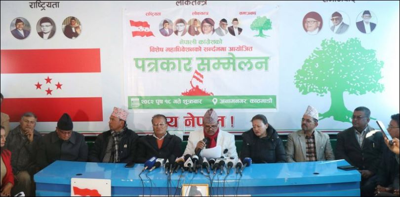 काठमाडौं । नेपाली कांग्रेसका विशेष महाधिवेशन पक्षधरले अब पार्टीसँग विशेष महाधिवेशनको विकल्प नरहेको बताएको छ । शुक्रबार अनामनगरमा पत्रकार सम्मेलन गर्दै उनीहरूले अब पार्टीसँग विशेष महाधिवेशनको विकल्प नरहेको बताएका हुन् । पत्रकार सम्मेलनमा नेता सुवास पोखरेलले...