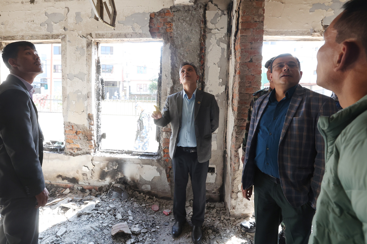 काठमाडौं । गृहमन्त्री ओमप्रकाश अर्यालले पूर्वराष्ट्रपति विद्यादेवी भण्डारीको काठमाडौँको चपलीस्थित घरको निरिक्षण गरेका छन् ।बिहीबार चपली पुगेर अर्यालले जेनजी आन्दोलनका क्रममा आगजनीमा परेको पूर्वराष्ट्रपति भण्डारीको घर निरिक्षण गर्दै क्षतिको विवरण लिएका...