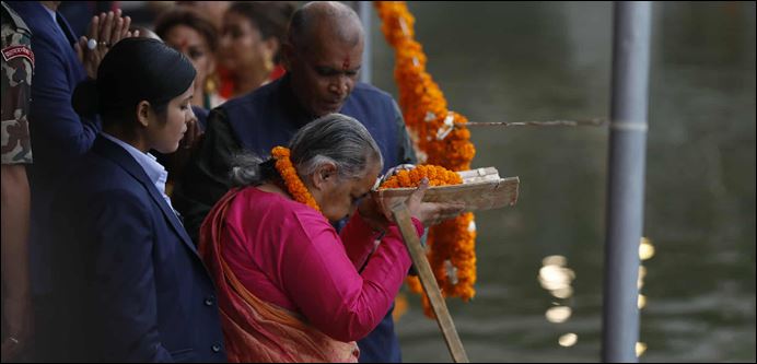 काठमाडौं । प्रधानमन्त्री सुशीला कार्की छठ पूजामा सहभागी भएकी छिन् ।प्रधानमन्त्री कार्की कमलपोखरीमा पुगेर छठ पूजामा सहभागी भएकी हुन् । प्रधानमन्त्री कार्कीले सूर्यसहित छठी माताको पूजा आराधना गरेकी छिन् ।छठ पर्वको मुख्य दिन आज साँझ अस्ताउँदो सूर्यलाई...