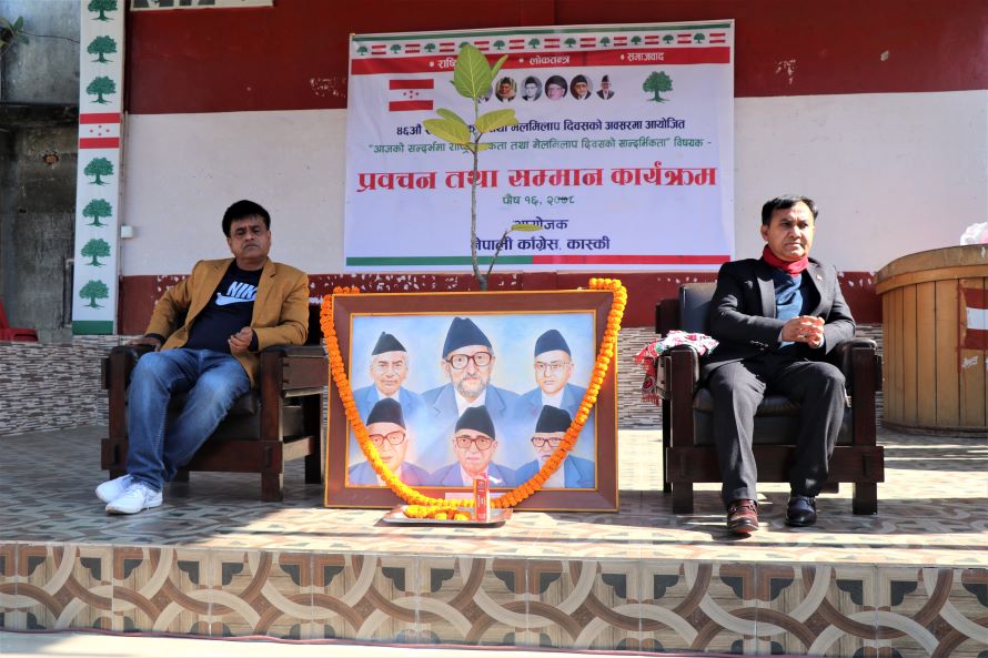 पोखरा । कास्की कांग्रेसले ४६ औै राष्ट्रिय एकता तथा मेलमिलाप दिवश मनाउन पोखरा चिप्लेढुङगामा रहेको पार्टी कार्यलमा कार्यक्रमको आयोजना गरेको थियो । कार्यक्रममा सहभागी हुन पार्टीका नवनिर्वाचित महामन्त्री विश्वप्रकाश शर्मा, सहमहामन्त्री जिवन परियार लगायत प्रदेश...