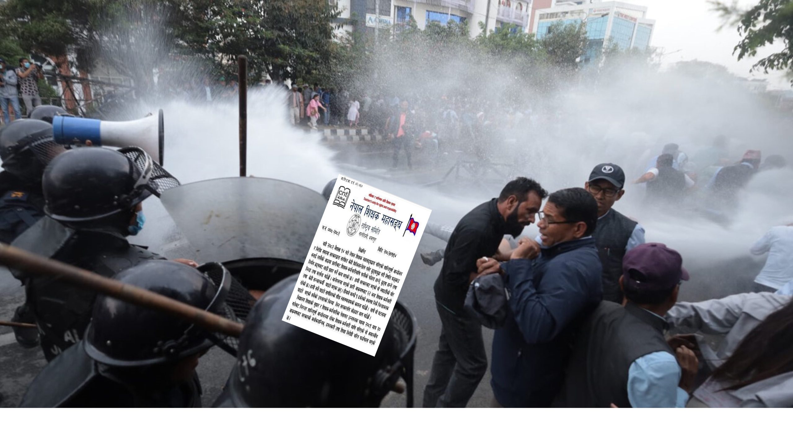 काठमाडौं । काठमाडौंको बानेश्वरमा प्रहरी र आन्दोलनरत शिक्षकबीच झडप भएको छ । बानेश्वरस्थित प्रहरीले तोकेको निषेधित क्षेत्रमा प्रहरी र आन्दोलनरत शिक्षकहरू झडप भएको हो । प्रहरीले लाठी र पानीको फोहोर प्रहार गरेको थियो भने शिक्षकहरूले सडक छेउछाउमा रहेको ढुङ्गा...