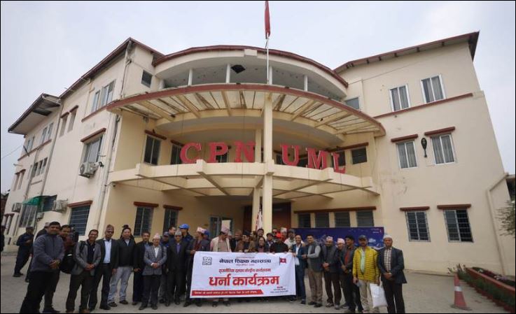 काठमाडौँ । नेपाल शिक्षक महासङ्घले घोषित आन्दोलनको दोस्रो चरण अन्तर्गत राजनीति दलका मुख्यालयमा धर्ना बसेका छन् । आज उनीहरू नेकपा एमाले केन्द्रीय कार्यालय च्यासलमा धर्ना बसेका हुन्। फागुन २४ गते पहिलो चरणको आन्दोलन पुरा गरेको महासङ्घले फागुन २७ गतेदेखि...