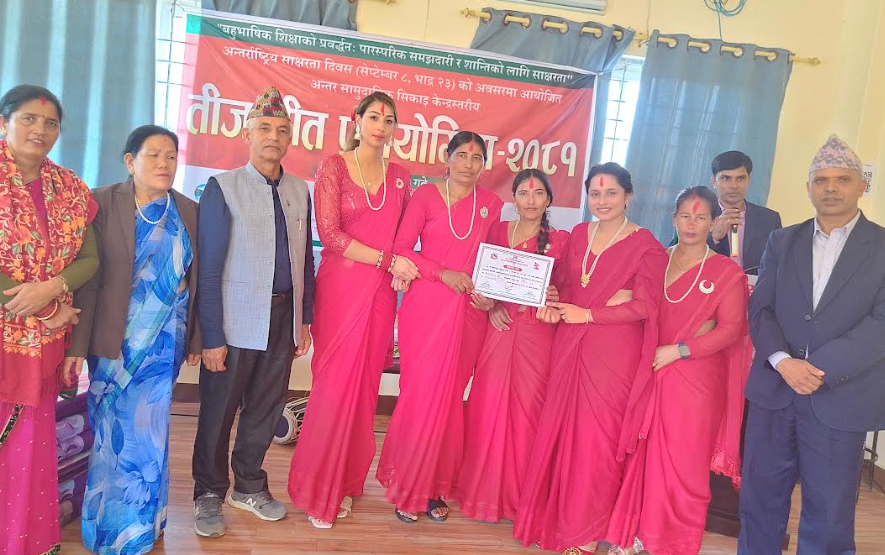 पोखरा । कास्कीमा अन्तर्राष्ट्रिय साक्षरता दिवस मनाइएको छ । शिक्षा बिकास तथा समन्वय इकाई कास्कीको आयोजनामा सामुदायिक सिकाइ केन्द्रहरू बिच चेतनामुलक तीज गित प्रतियोगिताको आयोजना गरि सो दिवस मनाइएको हो । प्रतियोगितामा अन्नपूर्ण गाउँपालिकाको नागडाडा सामुदायिक...
