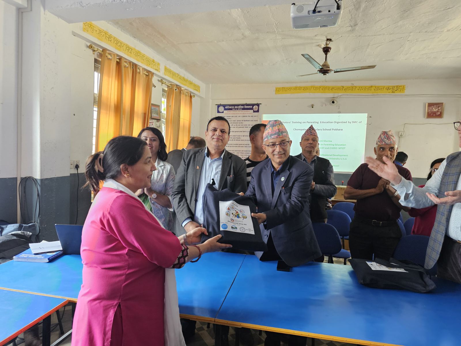 पोखरा । पोखरा महानगरपालिका वडा नं. १७ छोरेपाटनमा रहेको छोरेपाटन माविका शिक्षकहरुलाई पाँच दिने अभिभावक शिक्षा तालिम आईतबार देखि सुरु भएको छ । तालिमको पोखरा महानगरपालिकाका मेयर धनराज आचार्यले प्रशिक्षक लक्ष्मी शर्मालाई तालिमको कोर्षबुक हस्तान्तरण...