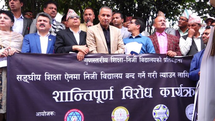 काठमाडौं। विद्यालय शिक्षा विधेयकविरुद्ध निजी विद्यालय सञ्चालकका विभिन्न सङ्घ–संस्थाहरूको संयुक्त आन्दोलन समितिले आन्दोलनको नयाँ कार्यक्रम घोषणा गरेको छ । समितिले भोलि १९ गतदेखि चरणबद्ध आन्दोलनका कार्यक्रमहरू घोषणा गरेको हो । आन्दोलनका कार्यक्रमहरू अन्तर्गत...